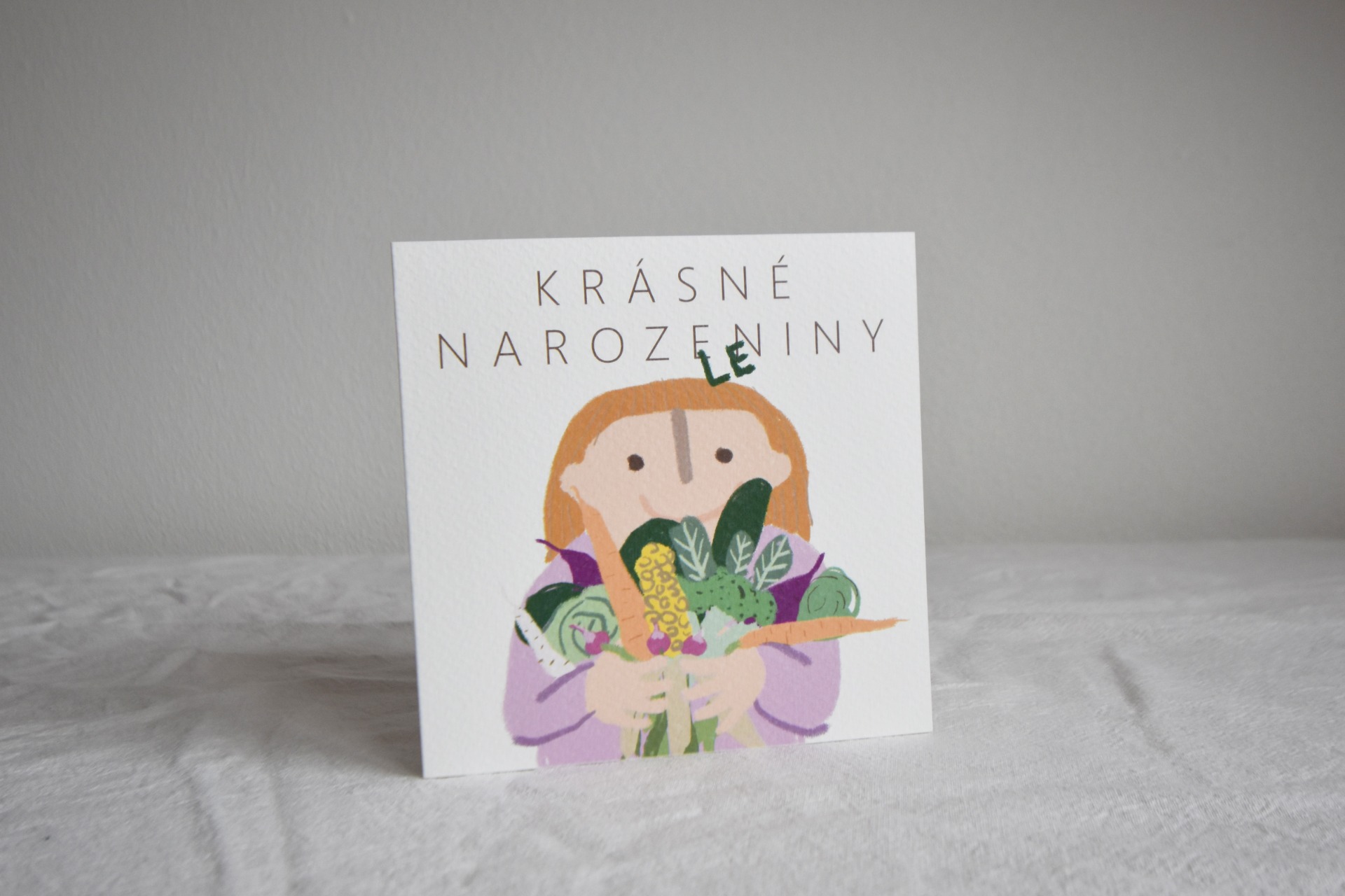 Pro všechny milovníky zeleniny, kteří slaví. Kdo říká, že kytice nemůže být jedlá? Vytištěno na strukturovaném tónovaném kartonu. Rozměr 14x14 cm. Vevnitř prostor na váš text. Pokud chcete více kusů, pište, domluvíme se. V případě zájmu o obálku je třeba ji přidat do objednávku jako samostatnou položku, děkuji za pochopení.