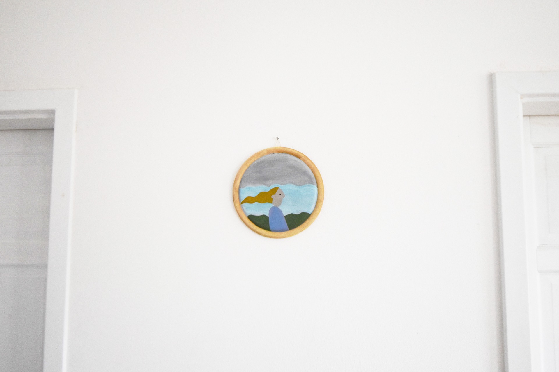 Pomíjení, nestálost, nostalgie i smíření. Plynutí vody, vanutí větru. Akryl na dřevě. Zafixováno matným lakem. Průměr obrazu 20 cm.